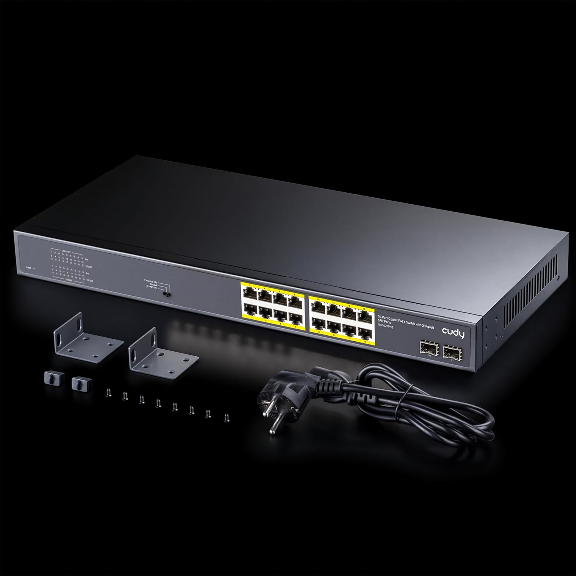 Cudy GS1020PS2 16 Port Gigabit 200W 250m PoE+, Gigabit SFP, CCTV, VLAN Metal Switch