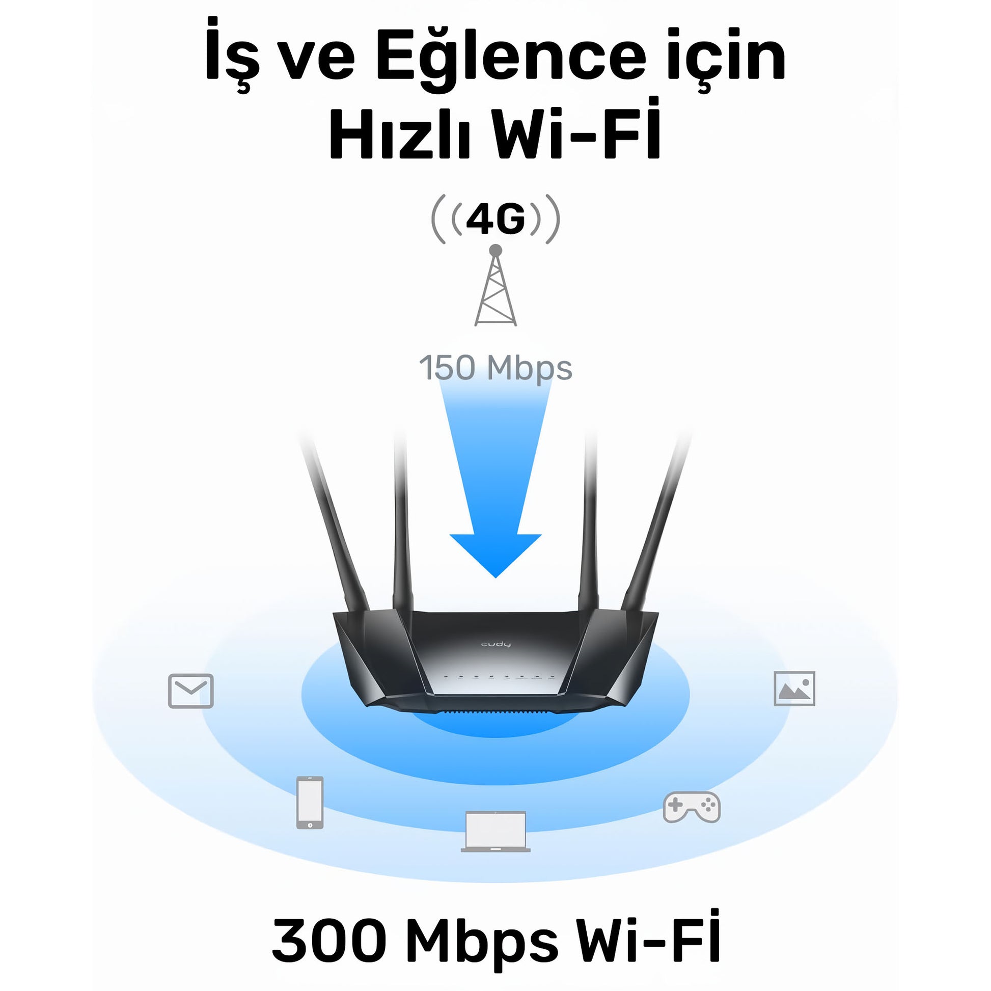 Cudy LT400 2,4GHz 300Mbps, 5GHz 867Mbps, 4 Ports 4G LTE Nano SIM Destekli DDNS Mobile Router