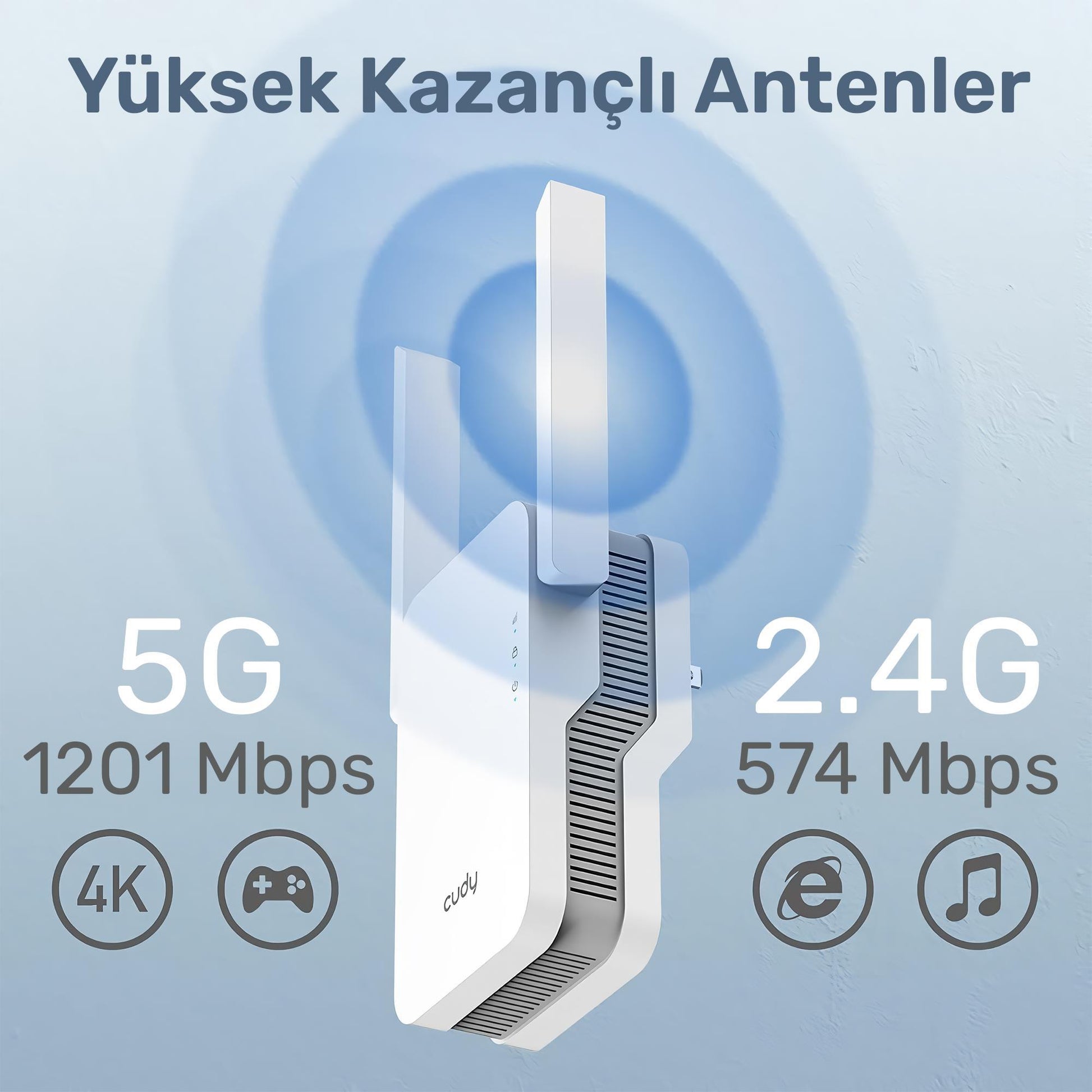 Cudy RE1800 5GHz 1201Mbps, 2.4GHz 574Mbps,Wi-Fi 6 Mesh 2x5dbi Menzil Artırıcı Repeater(AX1800Serisi)