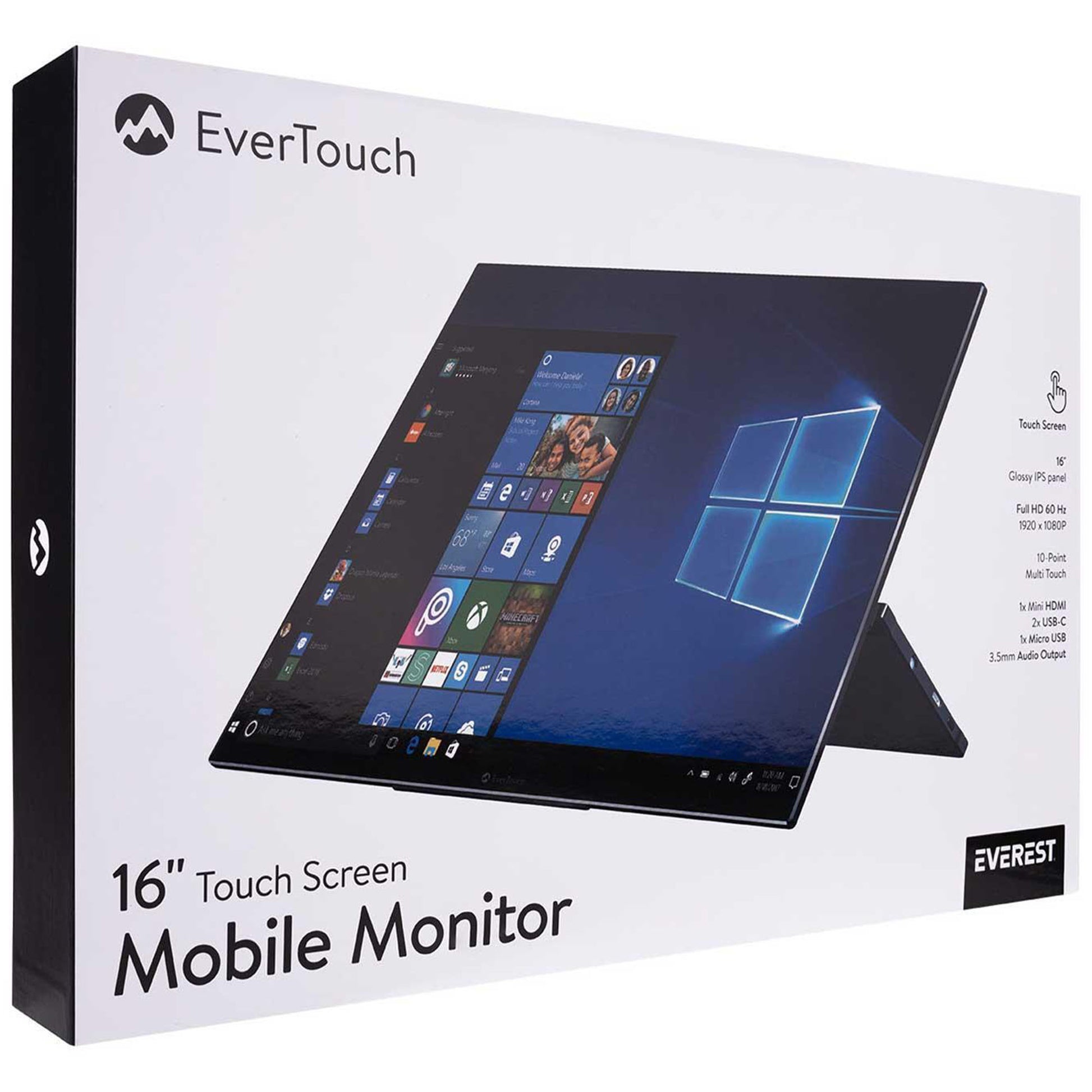 Everest Evertouch M-16, taşınabilir ve kompakt bir dokunmatik monitördür. 16 inç büyüklüğünde Full HD (1920x1080) çözünürlükte bir ekranı vardır ve 60Hz tazeleme hızı ile net ve keskin görüntüler sağlar. Monitör, HDMI, USB-C ve Micro Port bağlantı seçenekleri ile birlikte gelir ve birçok farklı cihazla uyumlu hale getirilir. Dokunmatik özellikleri, monitörü elle kontrol etmeyi ve cihazın dokunmatik hareketleri desteklemesini sağlar. Bu özellik, monitörü daha kullanışlı hale getirir ve farklı uygulamalarda kullanıcılara daha fazla esneklik sağlar. Evertouch M-16, dizüstü bilgisayarlar için ekran genişletme yapmak, taşınabilir multimedya cihazlarıyla kullanmak veya ofis/ev ortamlarında ek bir monitör olarak kullanmak için tasarlanmıştır.