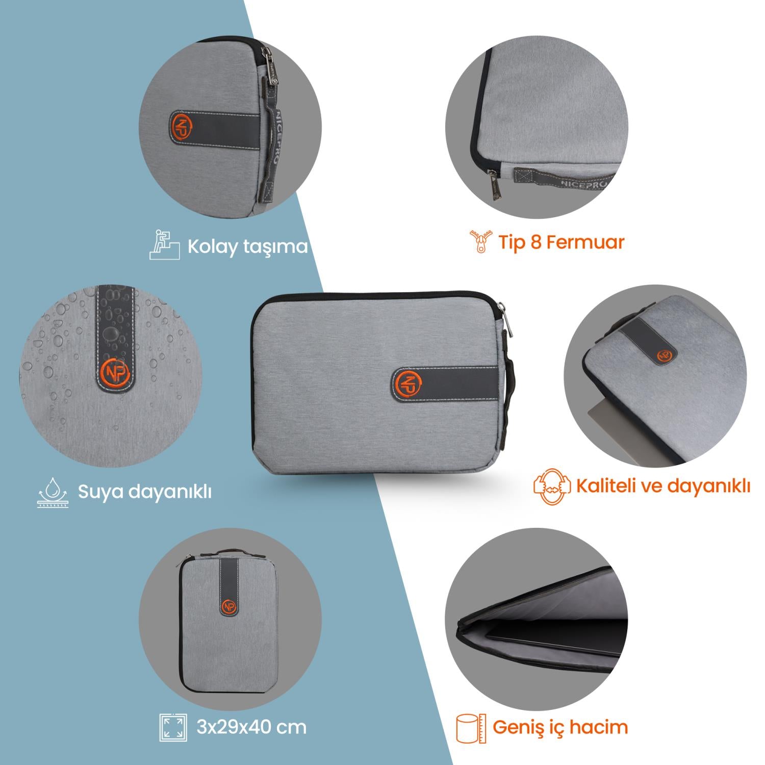 NPO AcePlus 15,6" Macbook,Apple Ipad Uyumlu,Ultra Korumalı Notebook & Tablet Kılıfı/Çantası-Açık Gri