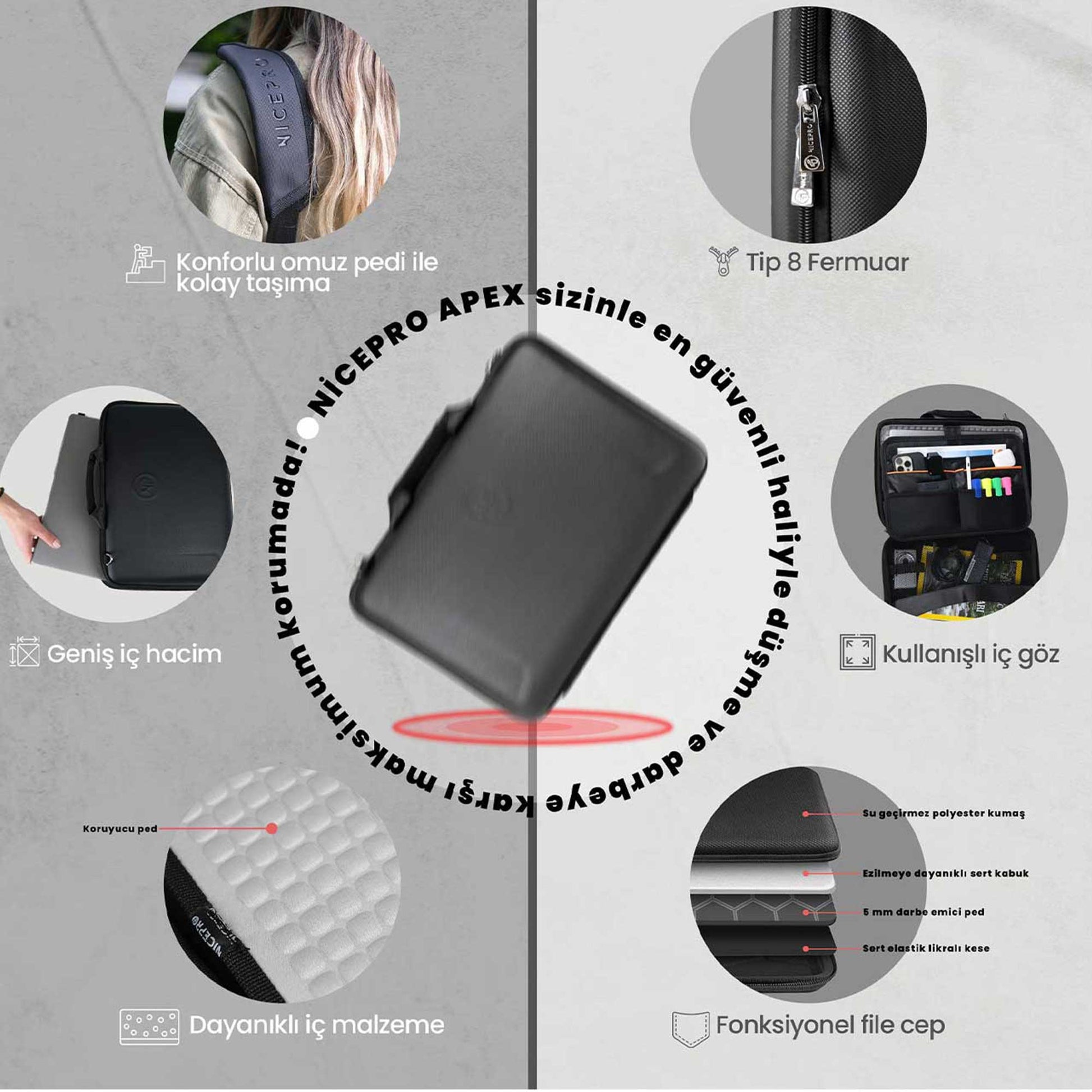 ● 14 MacBook Pro®, 13" MacBook Pro®, MacBook Air® veya 31,3 x 22,1 cm / 12,3 x 8,7 inç boyutuna kadar diğer dizüstü bilgisayarlarla da uyumludur!