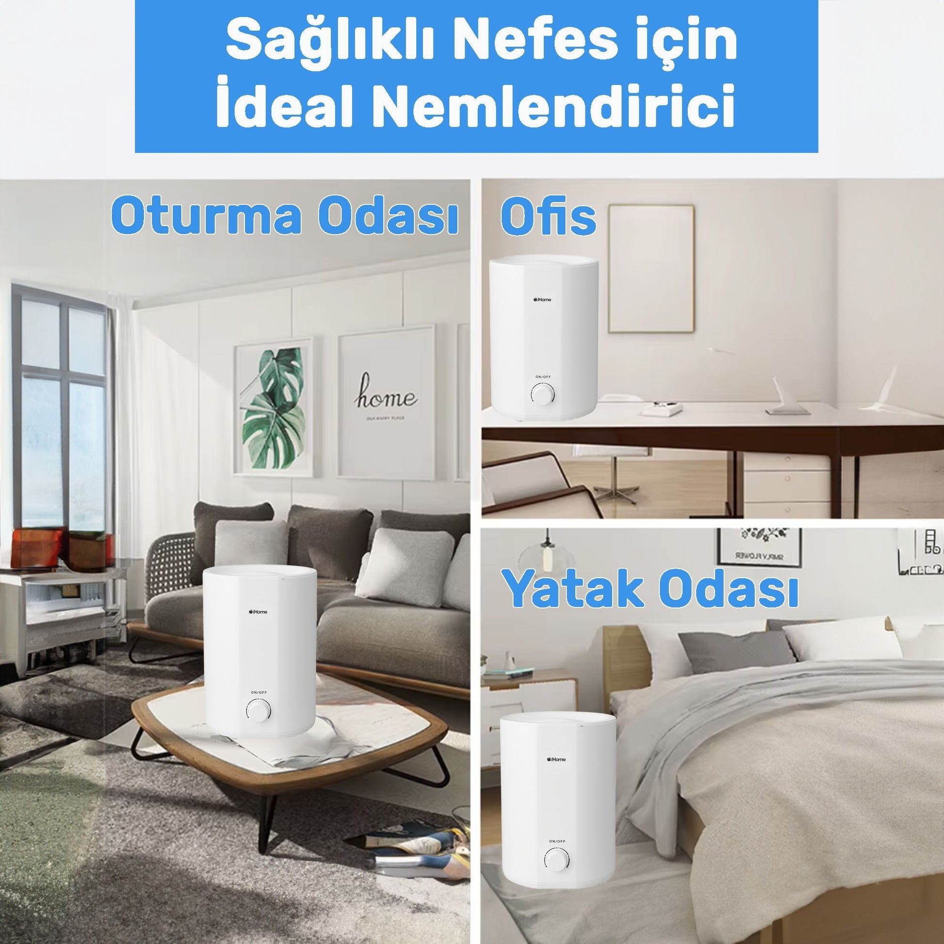 Ev ve ofis ortamları için tasarlanan 2.5L Akıllı Oda Nemlendirici, sessiz ve güçlü buharlaştırma teknolojisiyle bulunduğunuz ortama ideal nem dengesini kazandırır. Kuru havayı engeller, daha rahat nefes almanıza yardımcı olur ve özellikle uyku kalitesinin artırılmasında, alerji etkilerinin azaltılmasında, burun kuruluğu ve boğaz tahrişini önlemede etkili bir çözüm sunar.