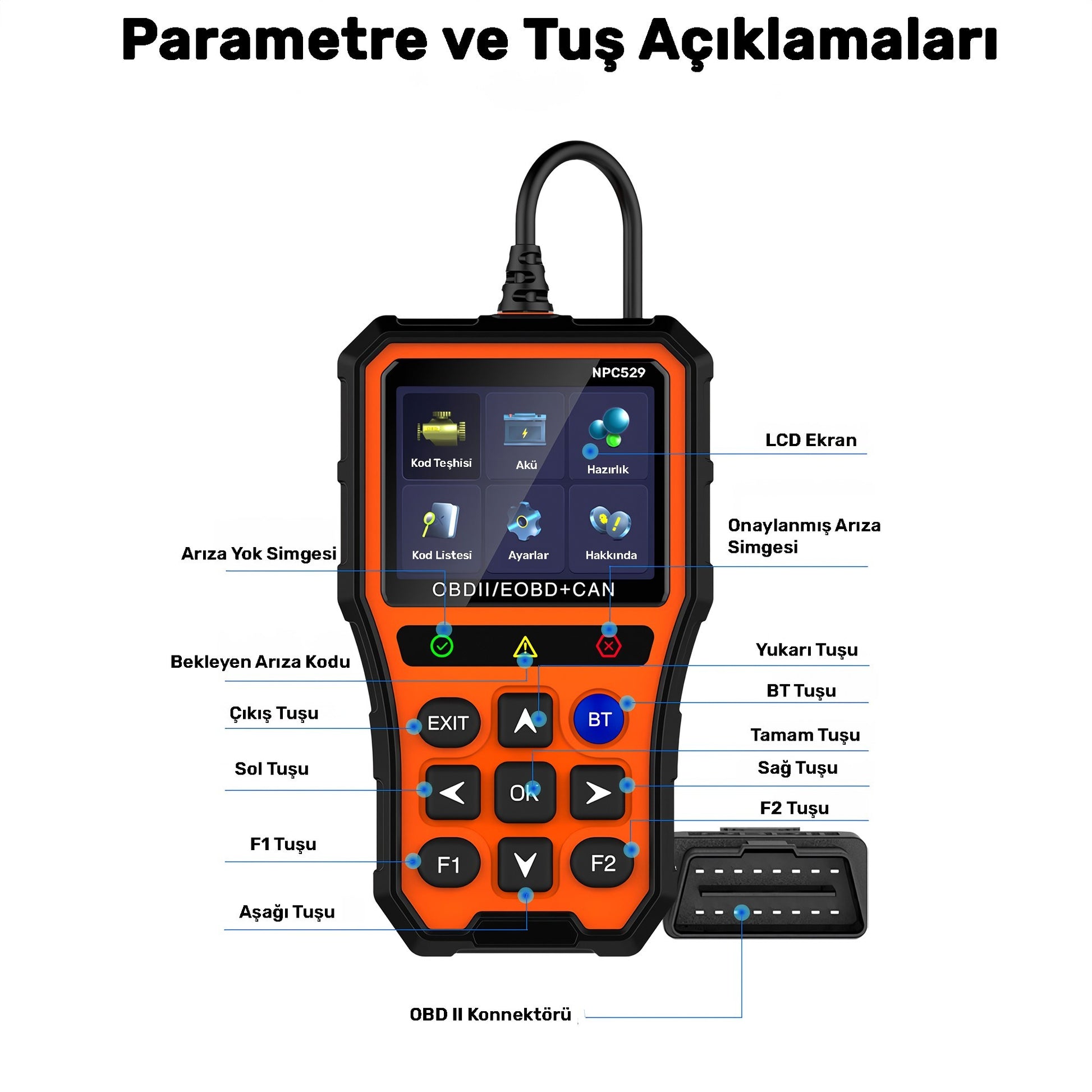 NPO NPC529 Türkçe OBDII/EOBD+CAN Modlu Araç Arıza Tespit/Silme Cihazı