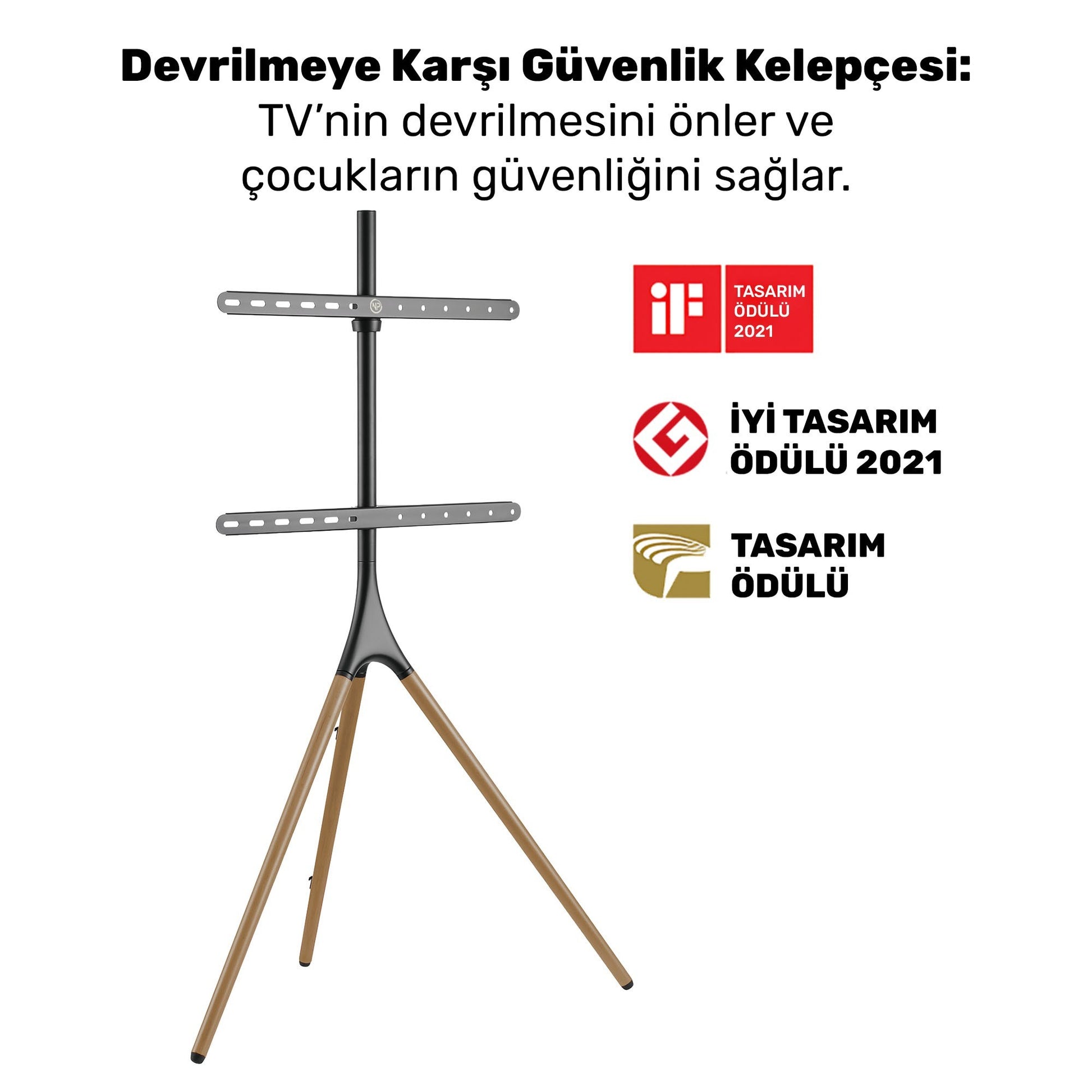 Bu stand sadece tasarımdan ibaret değil, aynı zamanda güvenlik ve düzen odaklıdır. Entegre "Kablo Yönetimi", kablo dağınıklığını standın arkasında gizlerken, "Devrilme Önleyici Güvenlik Kayışı" size ekstra bir güvence sunar.