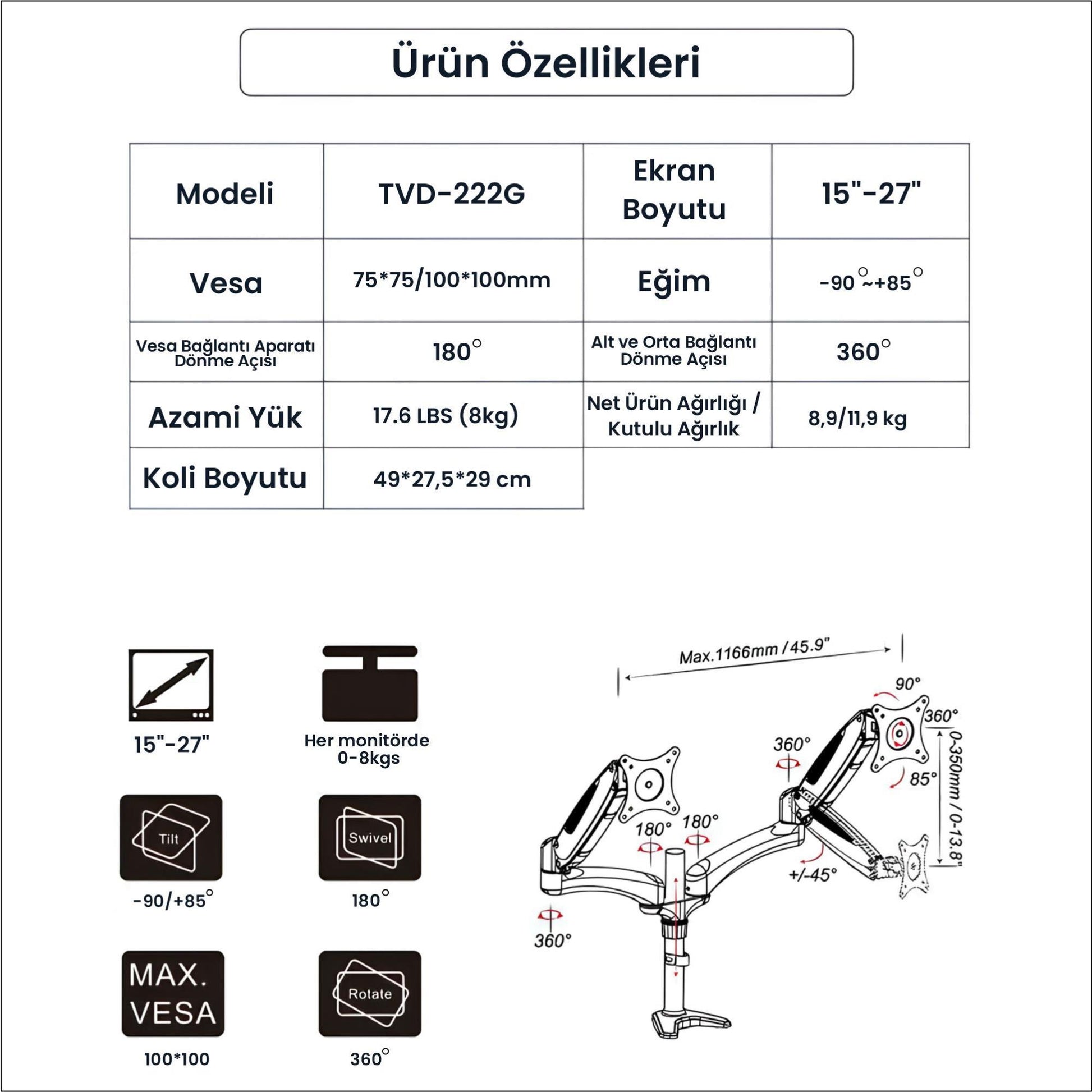 mıoNPO STD222 Çift Kol Monitör Tutucu - Beyaz