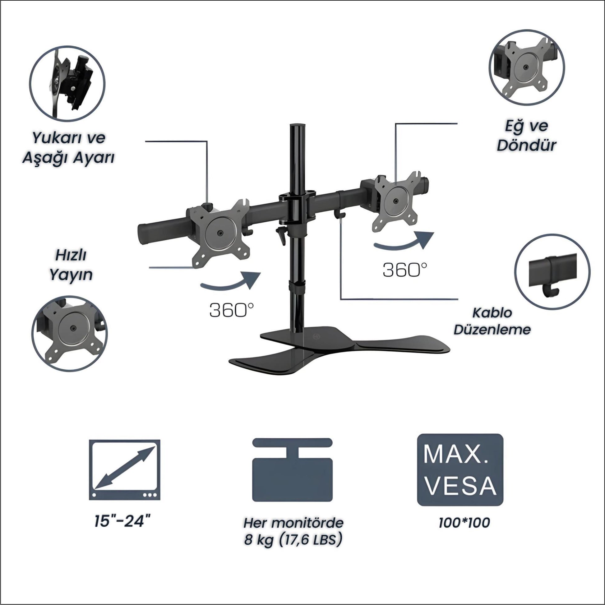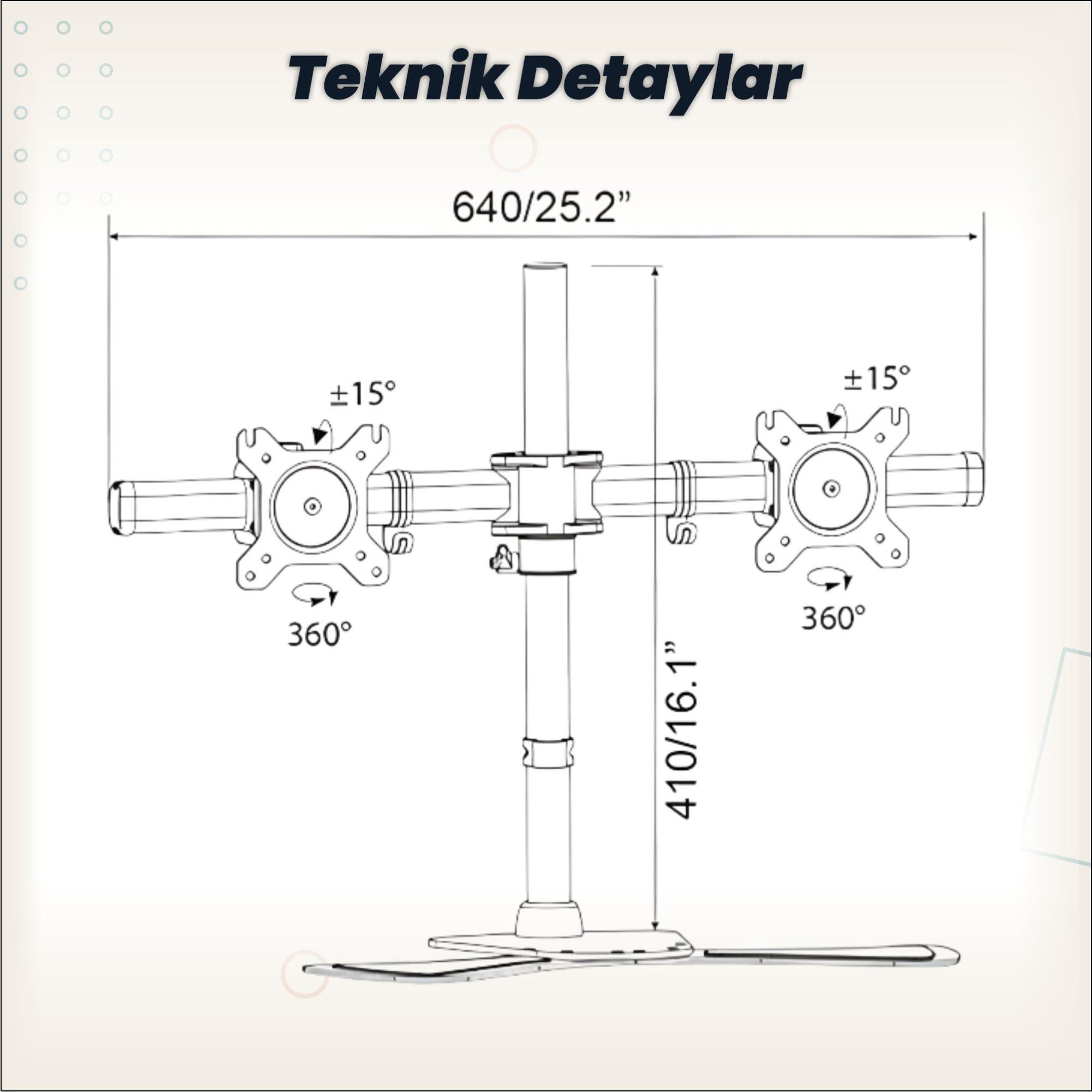 NPO STD320S Çift Kol 15"-24" Monitör ve TV Tutucu Stand - Siyah