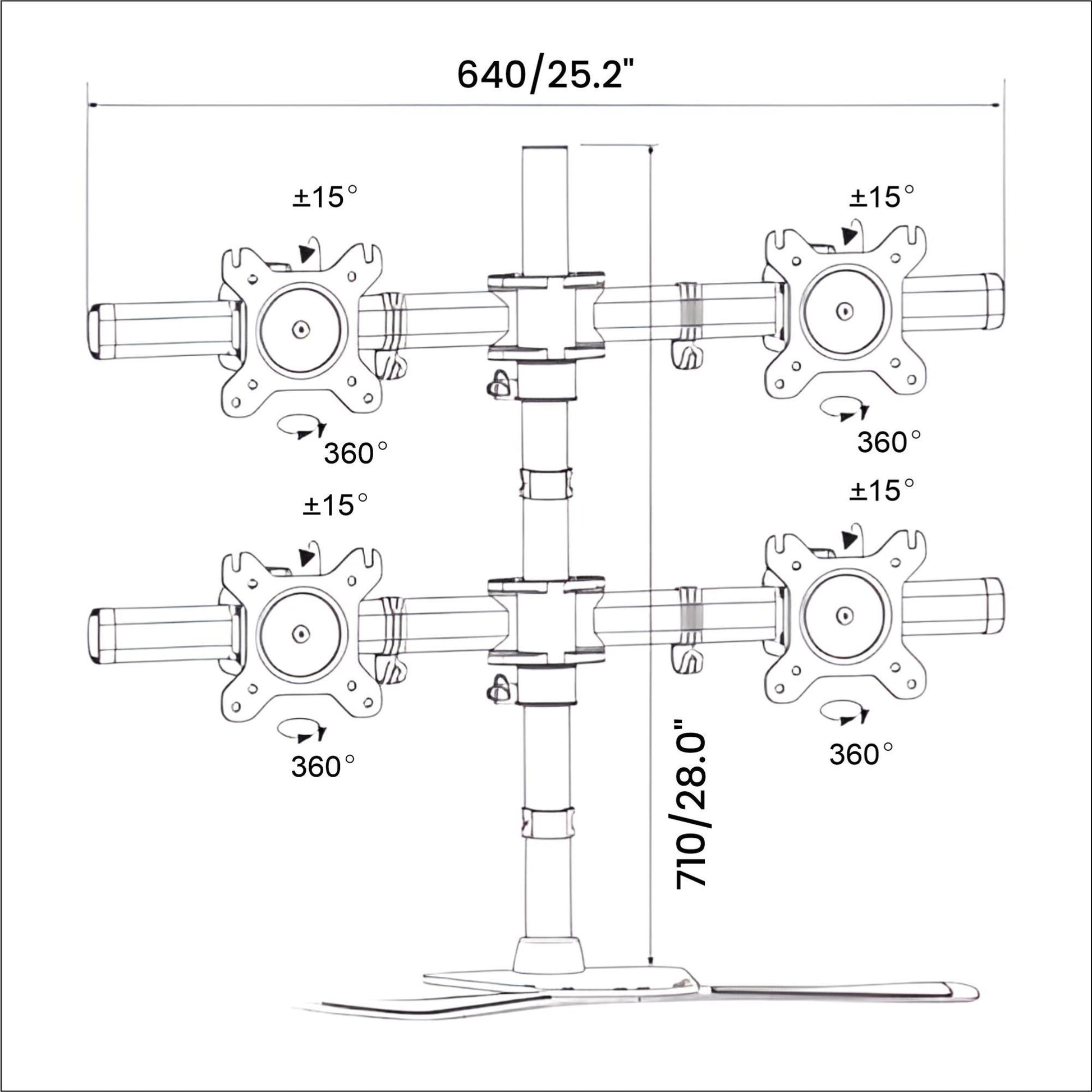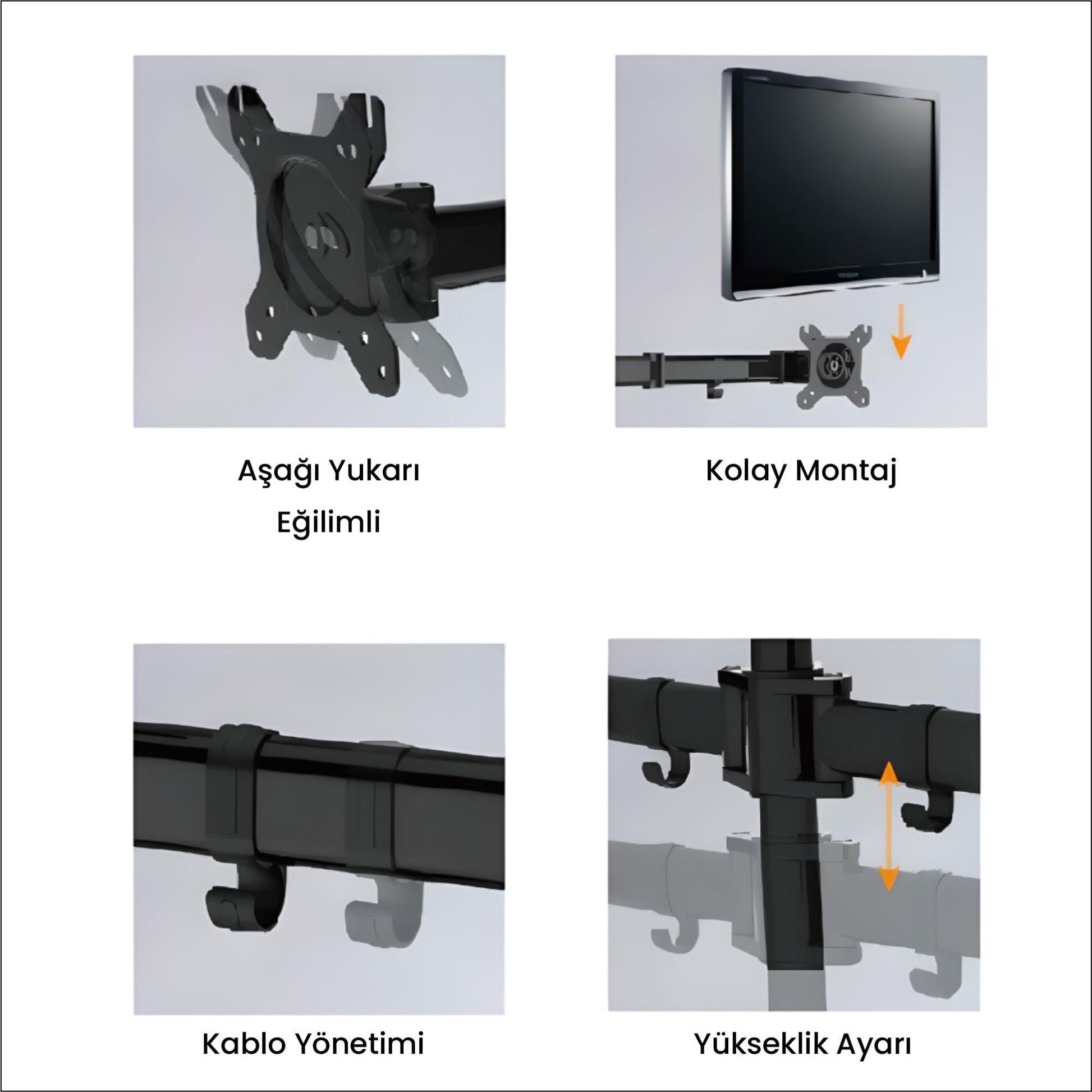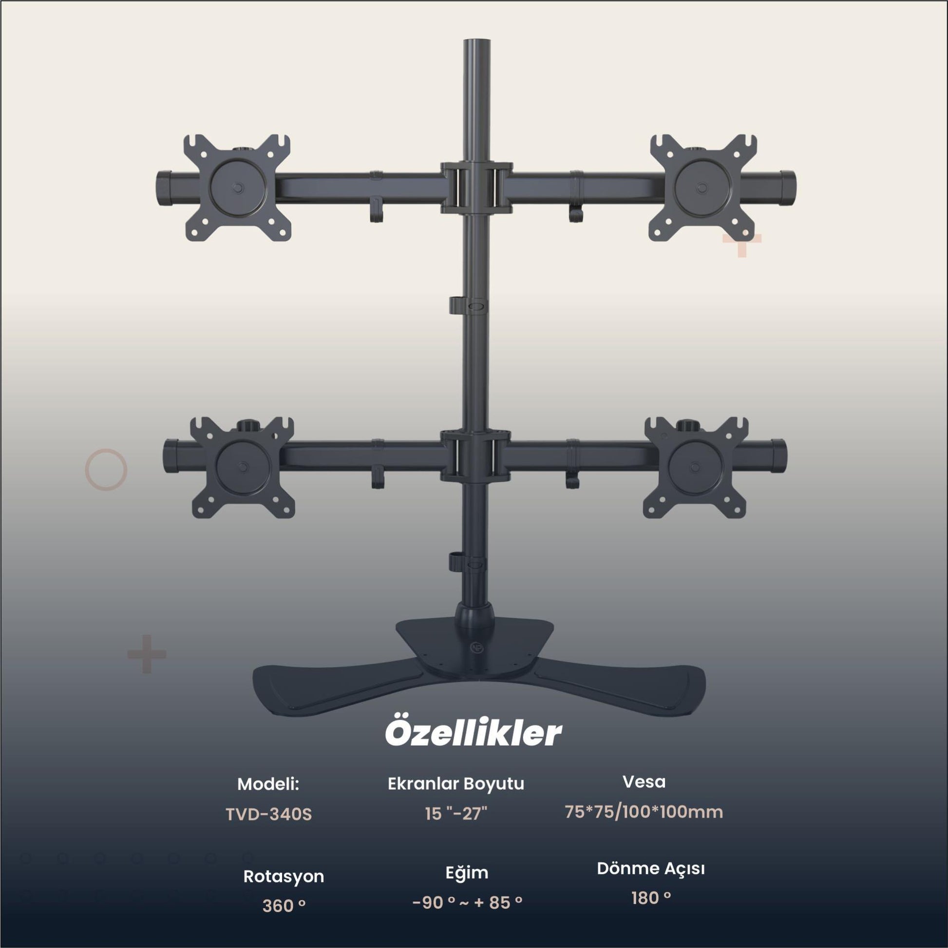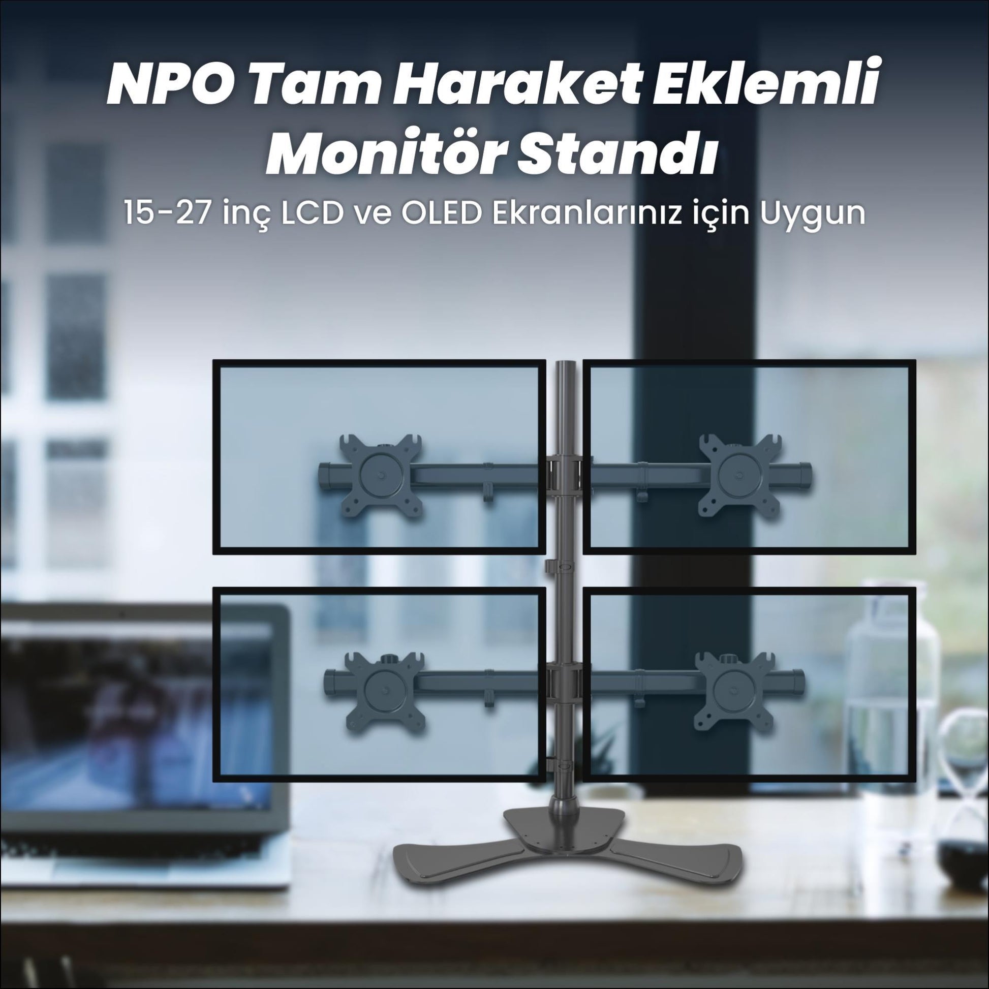 NPO STD340S Dört Kol 15"-27" Monitör ve TV Tutucu Stand - Siyah