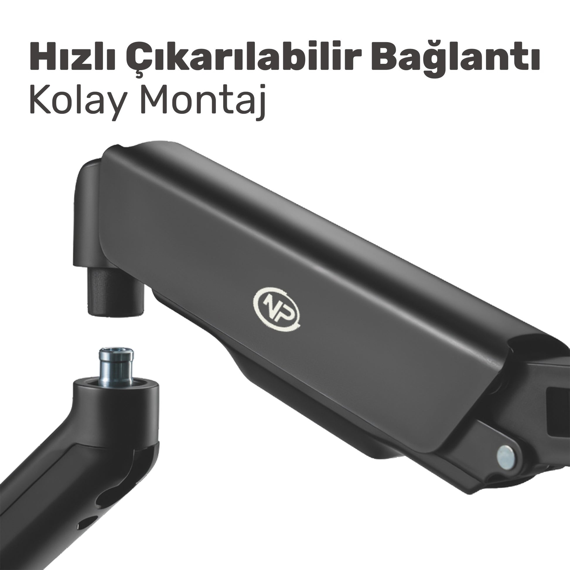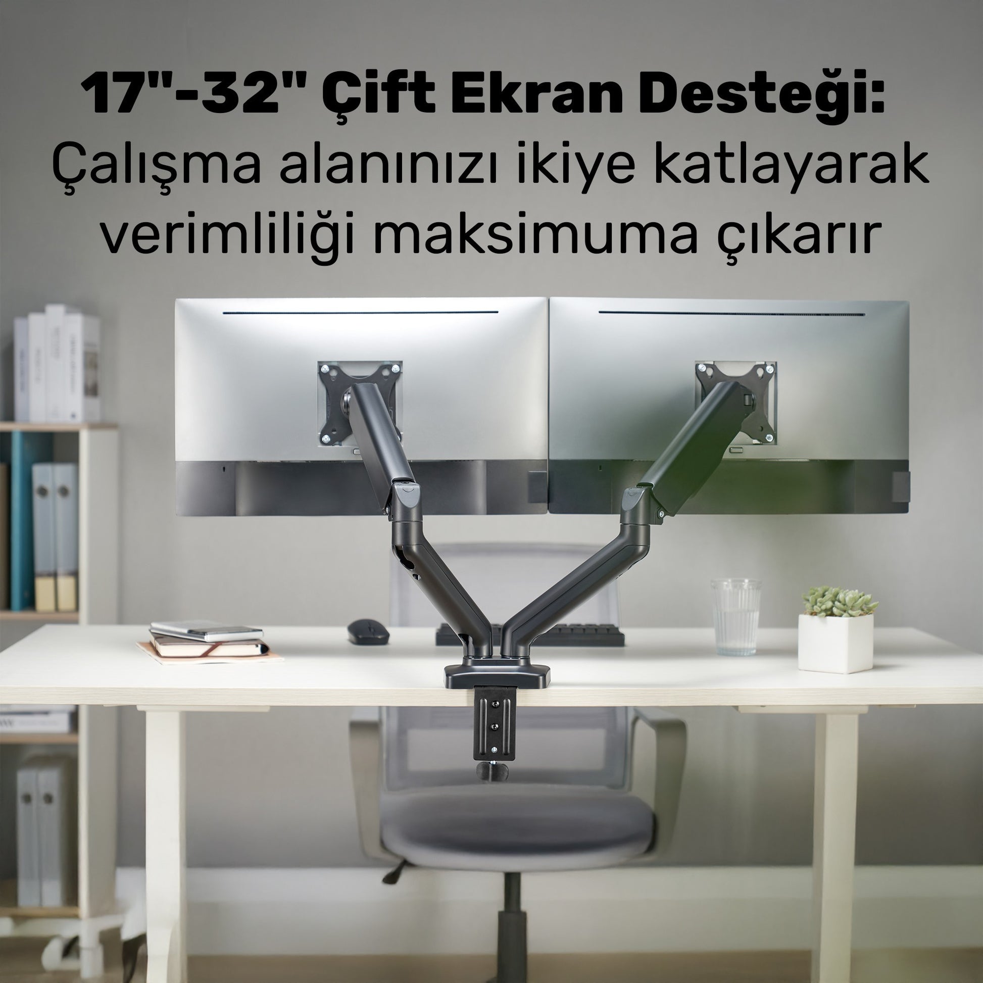 NPO STD46024E Airgrip 17"-32" Ergonomik 360° Amortisörlü VESA Çift Kol Monitör Tutucu