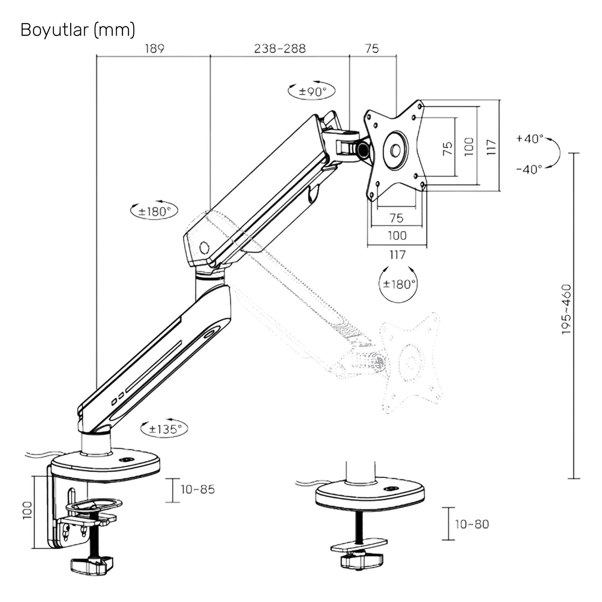 | Uyumlu Masa Kalınlığı (Kelepçe) | 10 - 80 mm |