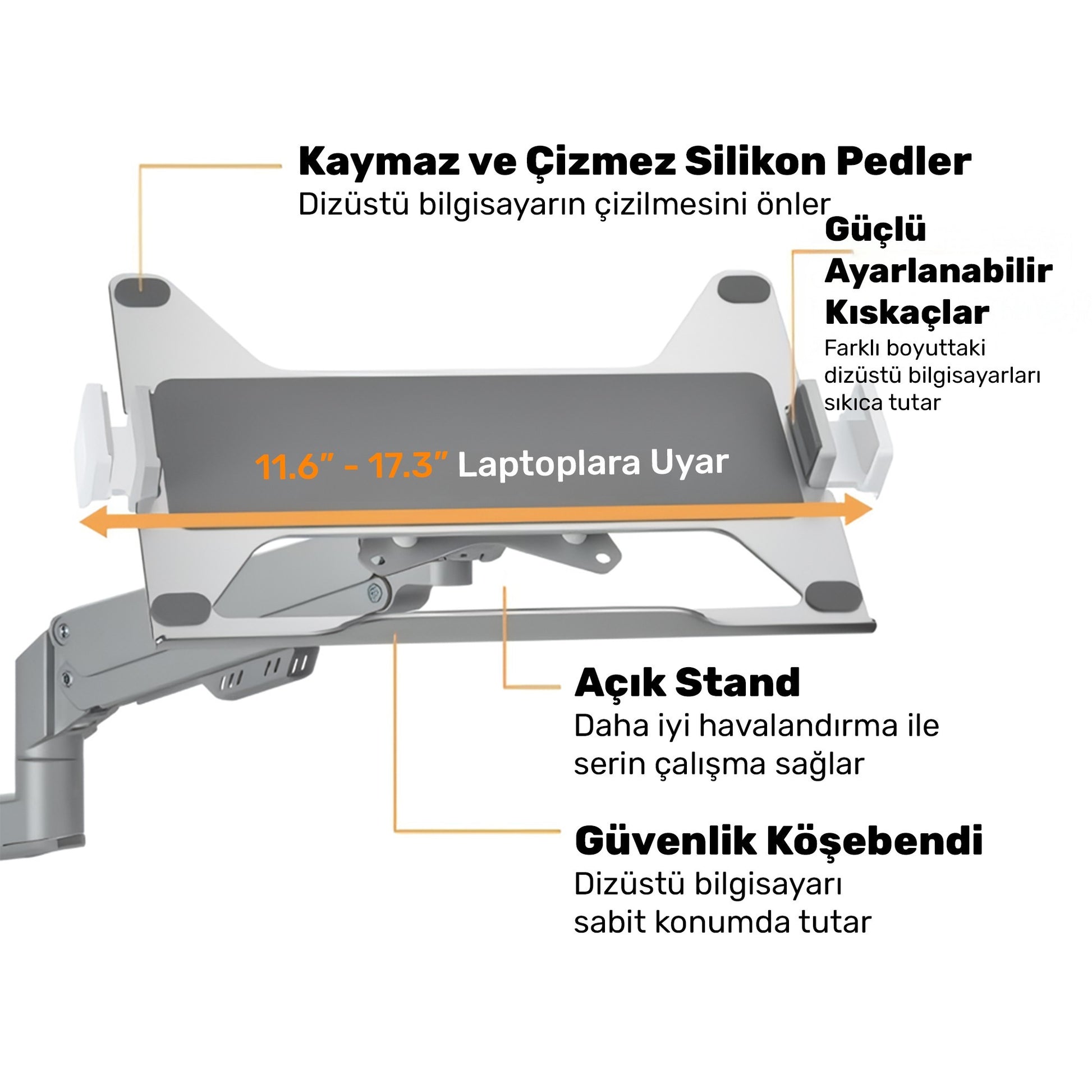 NPO STDNBH6 11.6"-17.3" Notebook/Laptop Tutucu Tepsi VESA 75x75 Uyumlu Monitör Kolu Aparatı