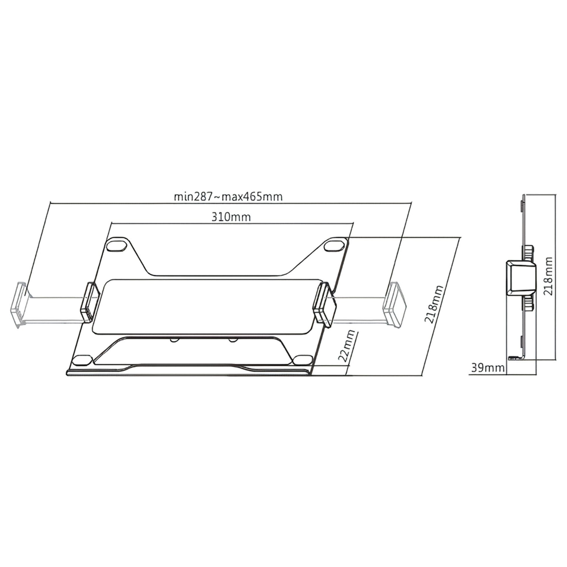 11,6″ ile 17,3″ aralığındaki dizüstü bilgisayarlar için evrensel bir laptop tutucudur. 75 × 75 mm VESA uyumlu kol ve montaj sistemlerine bağlanabilir ve ekran kolu ya da montaj aparatı ile birlikte ergonomik bir yükseklik ve açı ayarı sağlar. Anodize edilmiş alüminyumdan üretilmiş yüzeyi şık bir görünüm sunar ve uzun süreli kullanım için dayanıklıdır. İki adet ayarlanabilir pençe ve silikon pedler ile dizüstü bilgisayar ürüne sabitlenir, ayrıca havalandırma açıklıkları sayesinde cihazın aşırı ısınması önlenir.