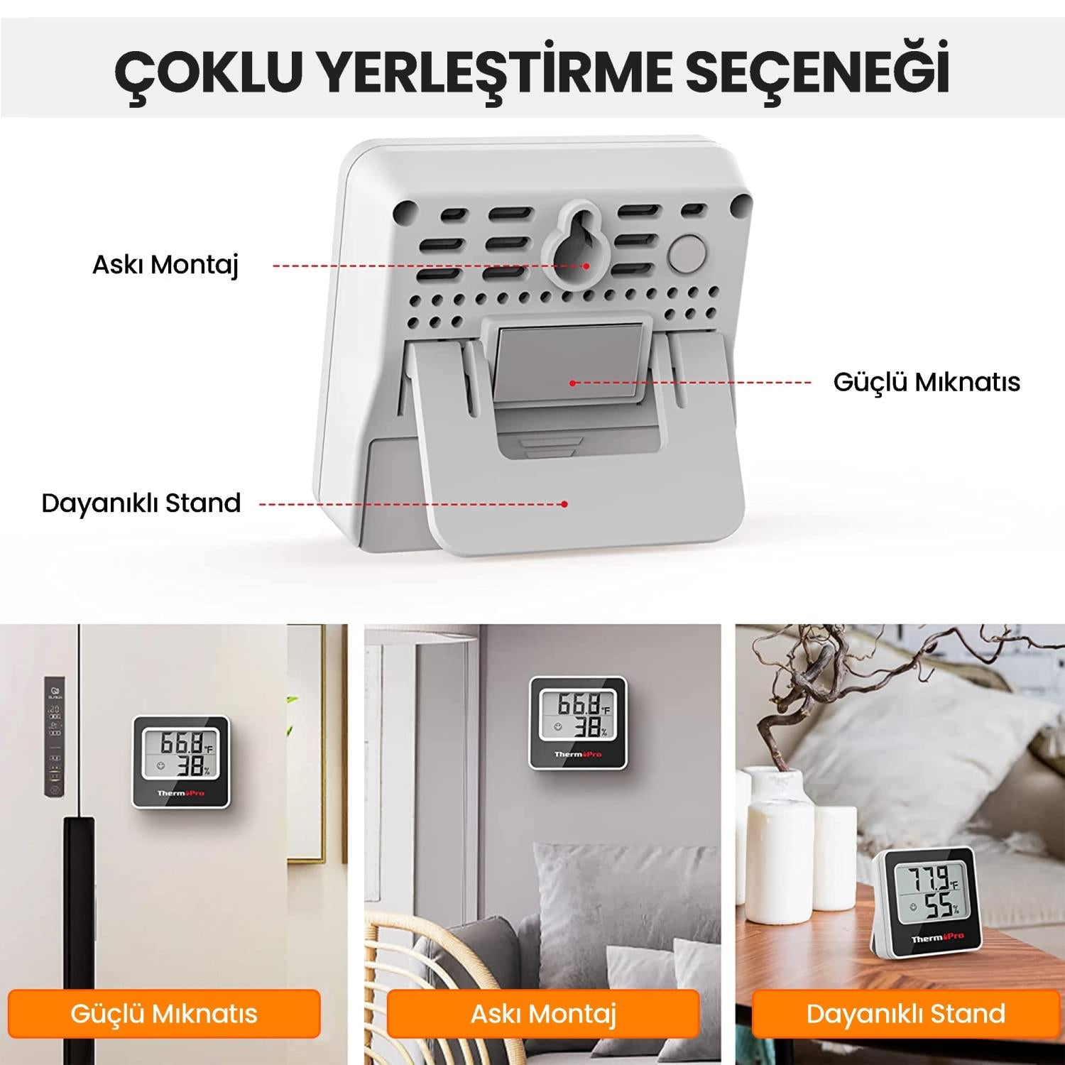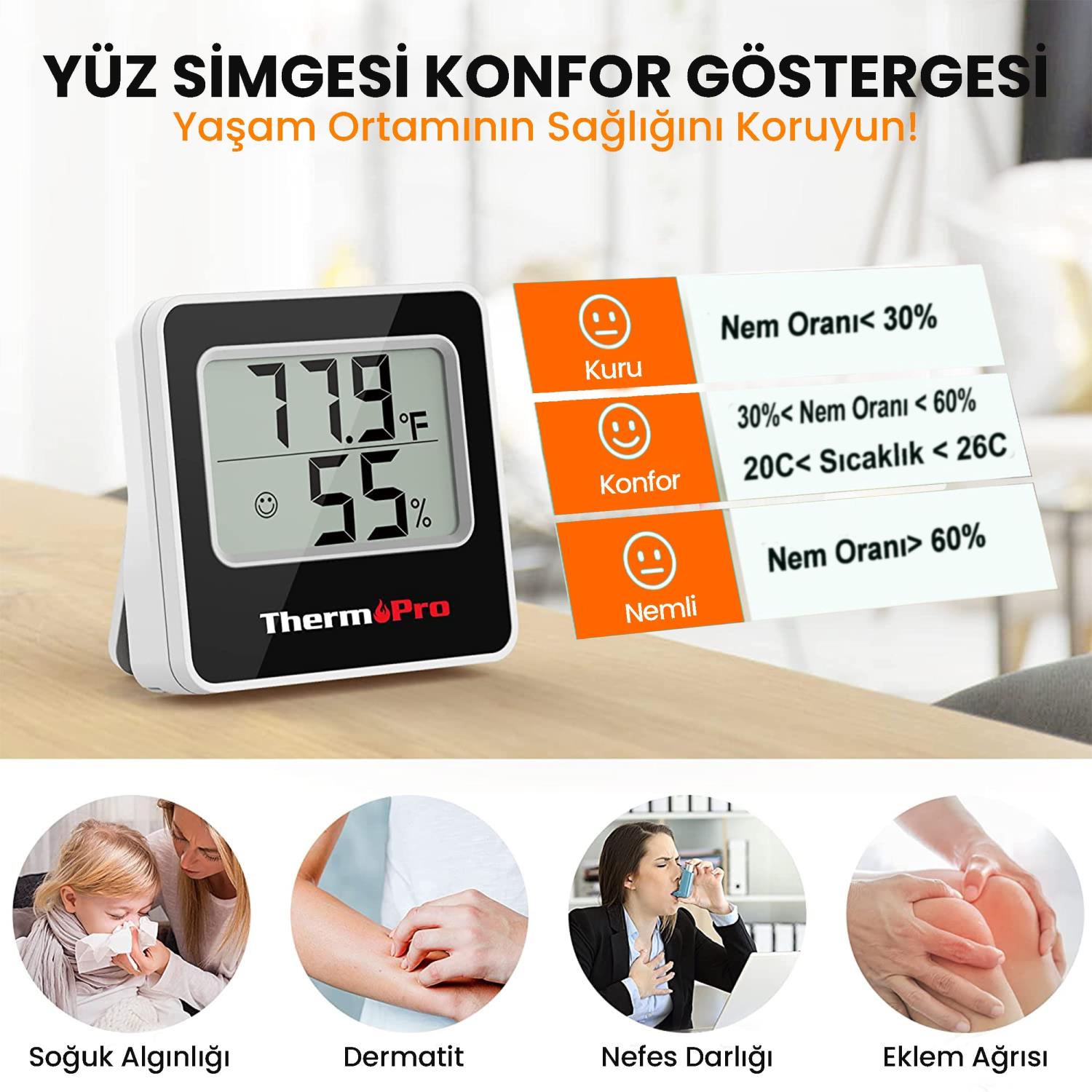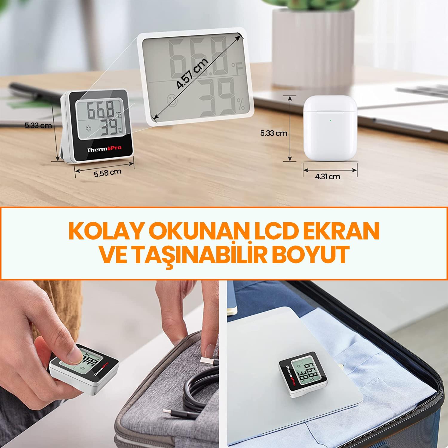 ThermoPro TP157 İç Mekan (Sera, Dolap, Bebek Odası) Hassas Sıcaklık ve Nem Ölçer Mini Termometre