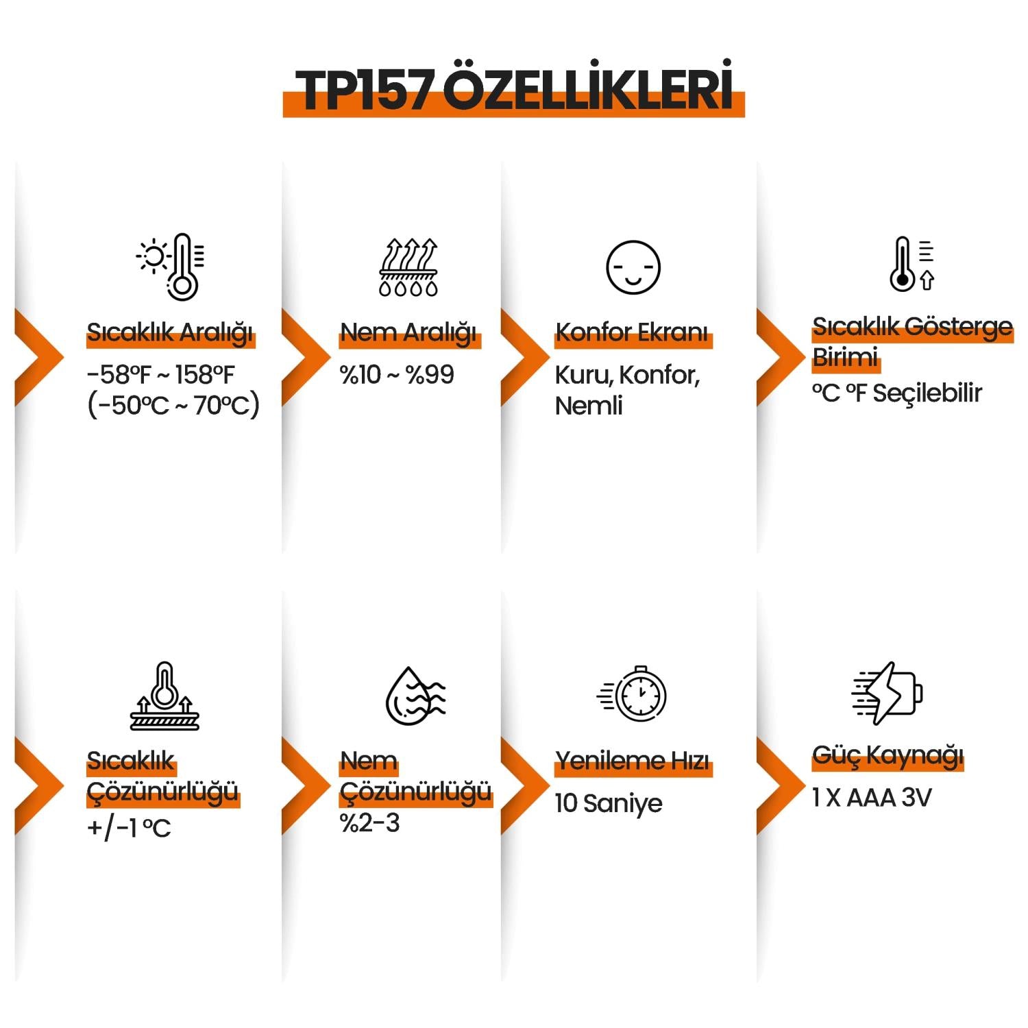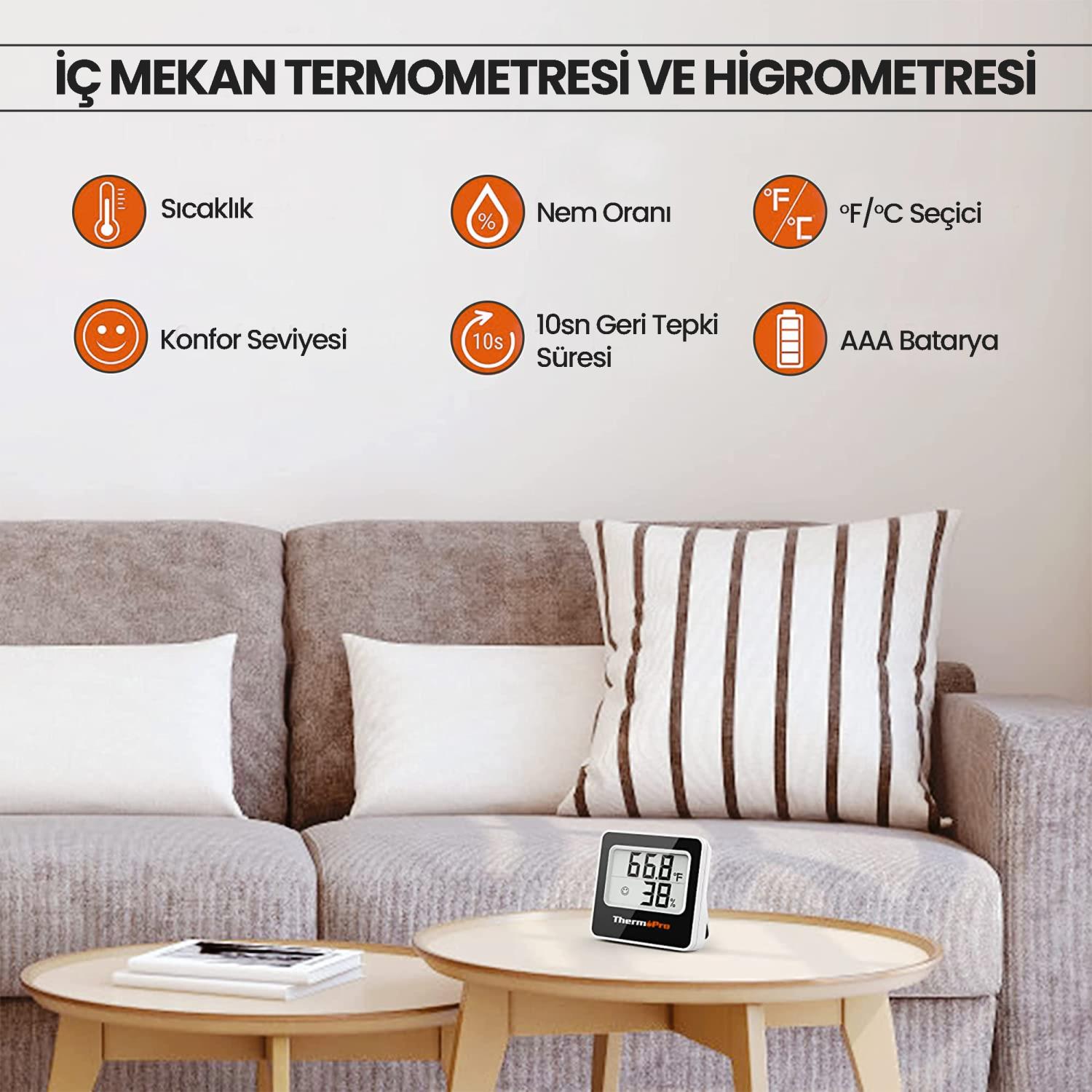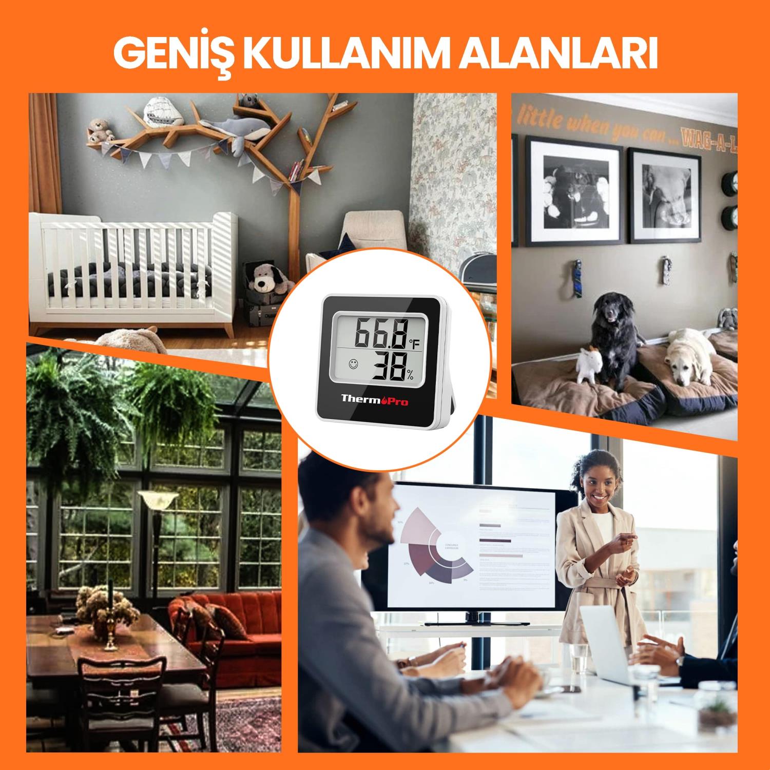 ThermoPro TP157 İç Mekan (Sera, Dolap, Bebek Odası) Hassas Sıcaklık ve Nem Ölçer Mini Termometre