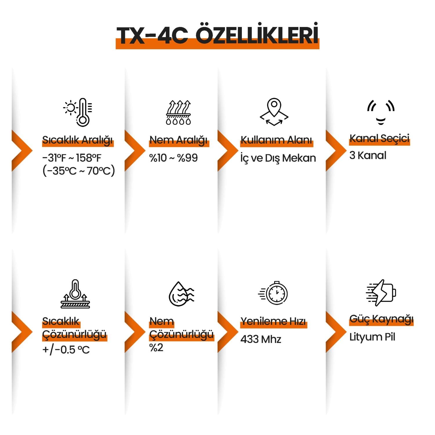 ThermoPro TX-4C İlave Dış Sensör (TP60C, TP63C, TP65C) İçin Uyumludur