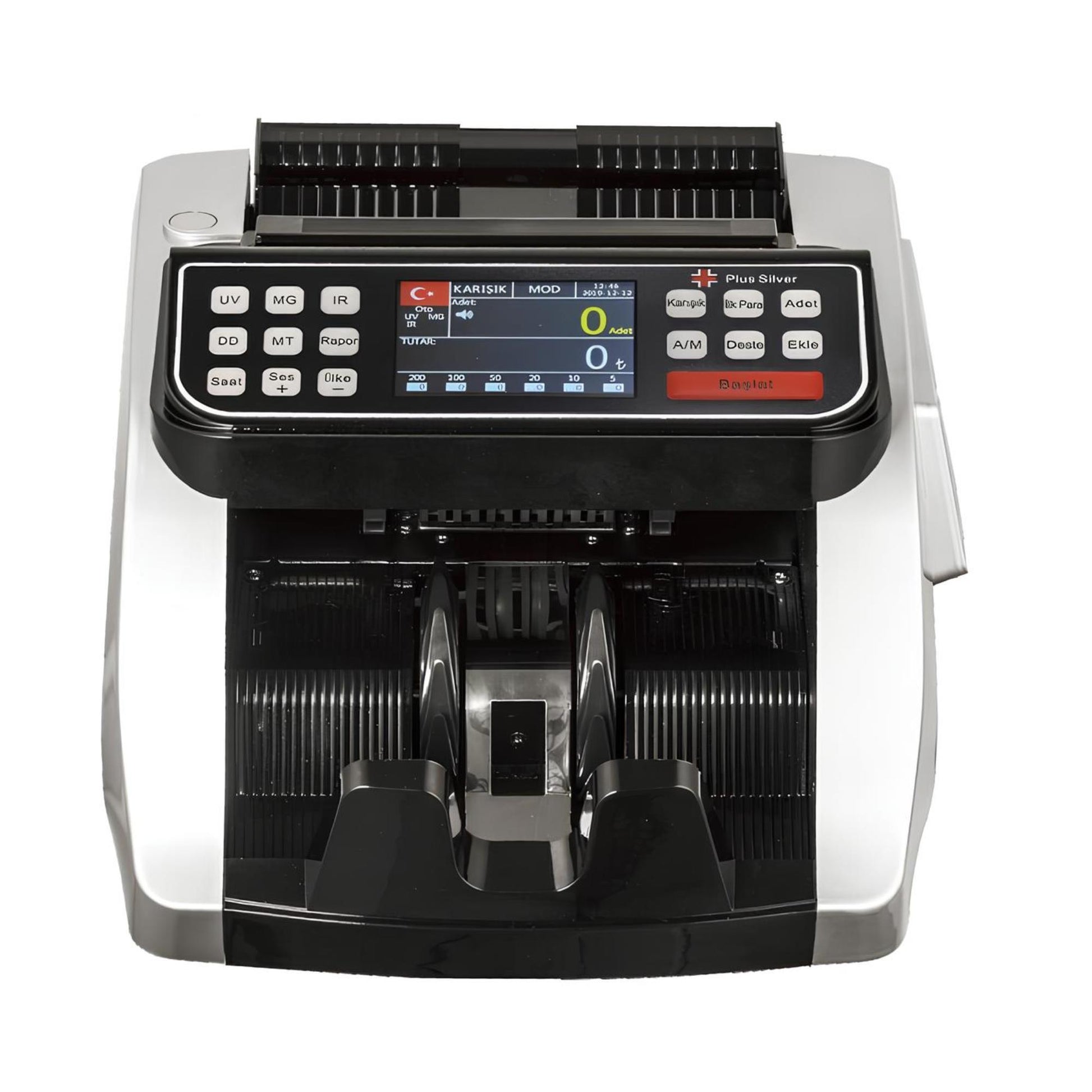 Plus Silver Tek Katlı Kağıt Para Sayma Makinesi, hızlı ve hassas bir şekilde kağıt paraları sayar. Yüksek hızlı motoru sayesinde büyük miktarlardaki paraları kısa sürede işleyebilir.