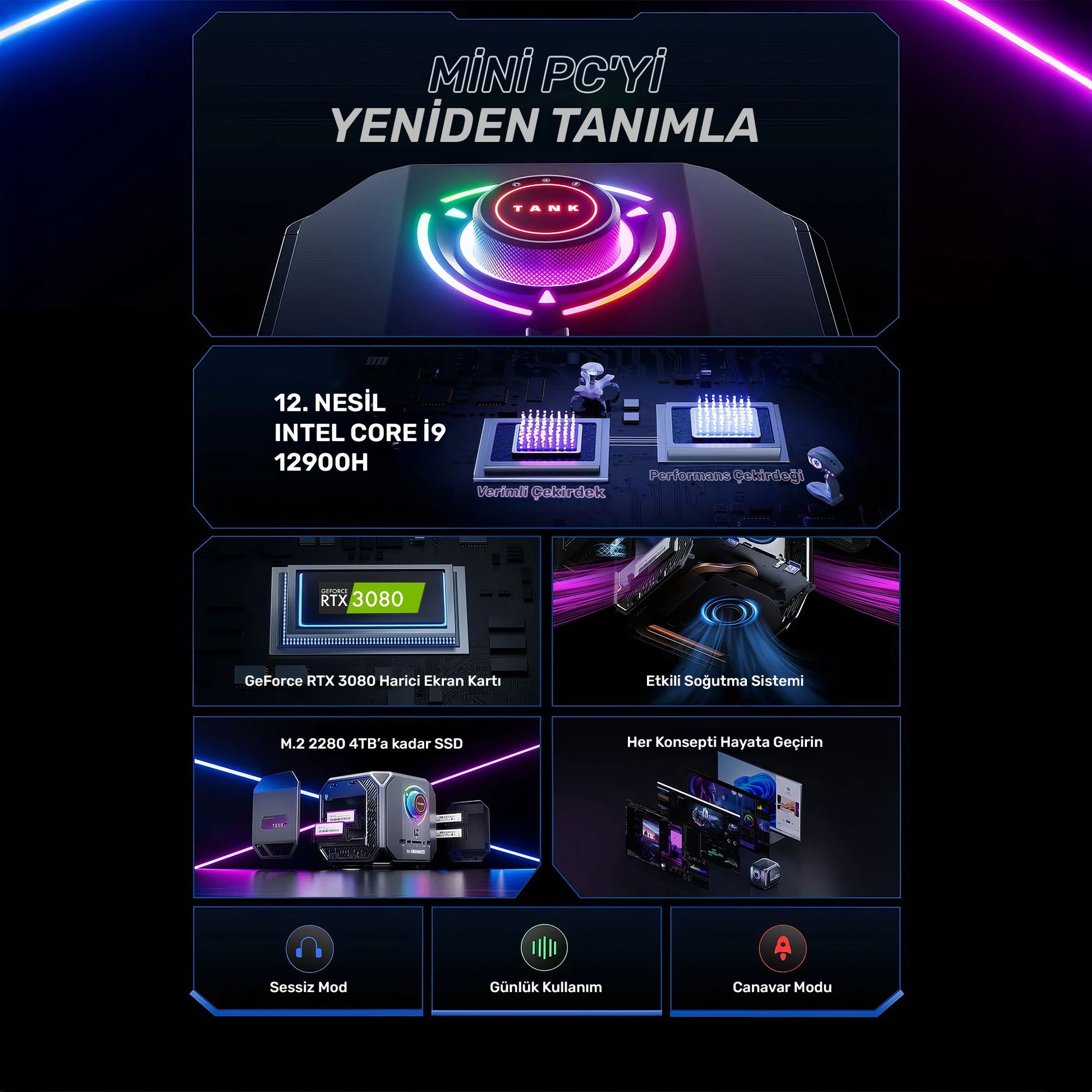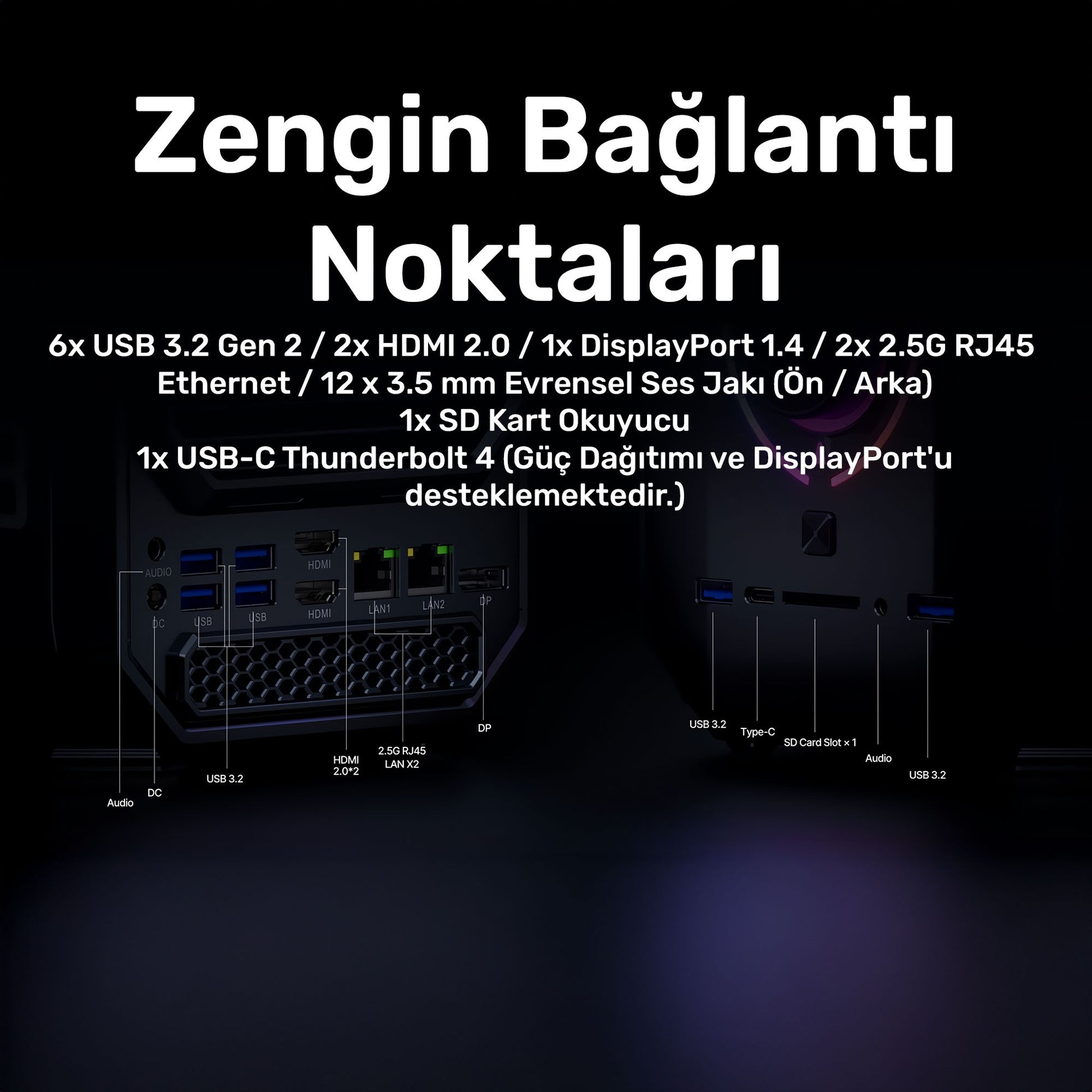 DDR5 RAM ve SSD depolama kapasitesiyle donatılan mini oyuncu masaüstü bilgisayar, hızlı veri erişimi ve akıcı sistem performansı sunar. 64 GB’a kadar RAM yükseltme desteği ve esnek depolama yapısı sayesinde sisteminizi ilerideki ihtiyaçlara kolayca adapte edebilirsiniz.