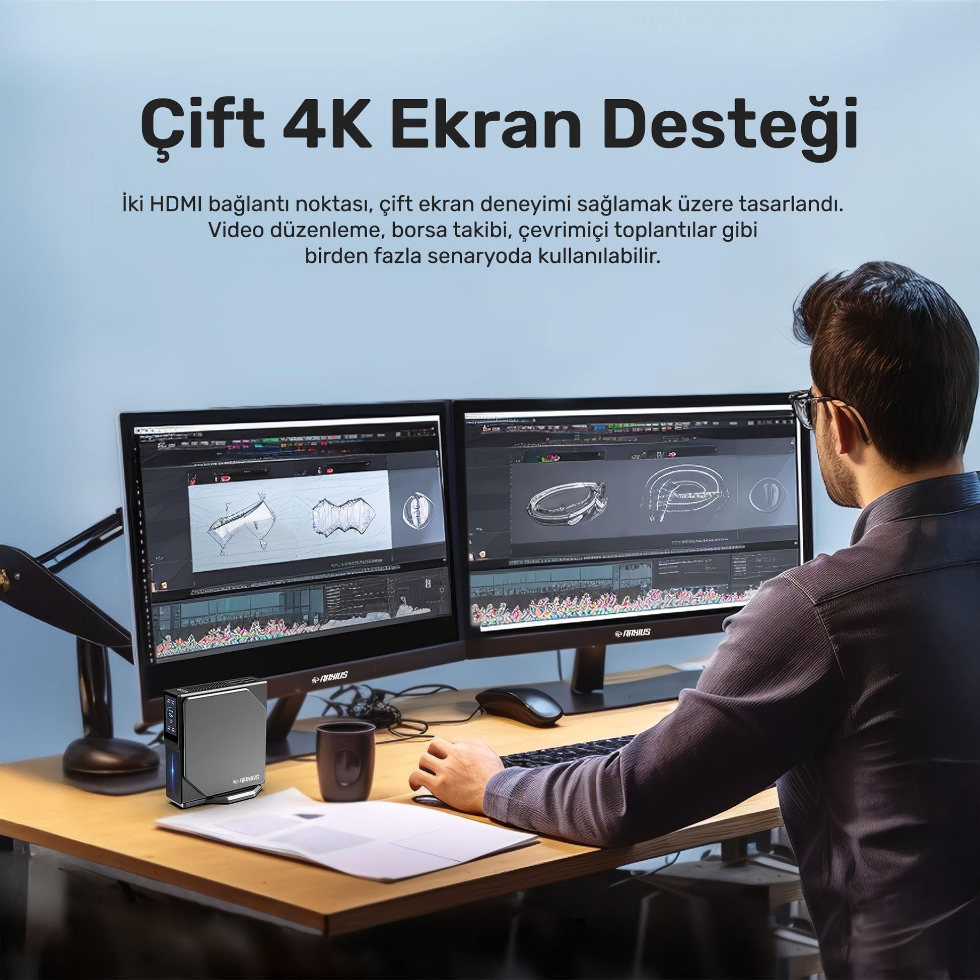 RaXius Mini Masaüstü Bilgisayar, verilerinizi güvence altına alırken, ekran paylaşım özellikli portları ile genişletilmiş ekran seçenekleri sunan RaXius Mini Masaüstü Bilgisayar, kullanıcıya esneklik kazandırır. Bu özellikler, profesyonel kullanıcılar için güvenilir bir çalışma ortamı sağlar.