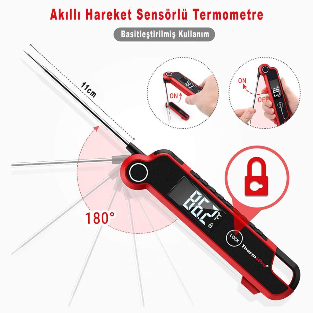 Thermopro TP620 Su Geçirmez Katlanabilir LED Ekranlı Gıda Pişirme Termometresi