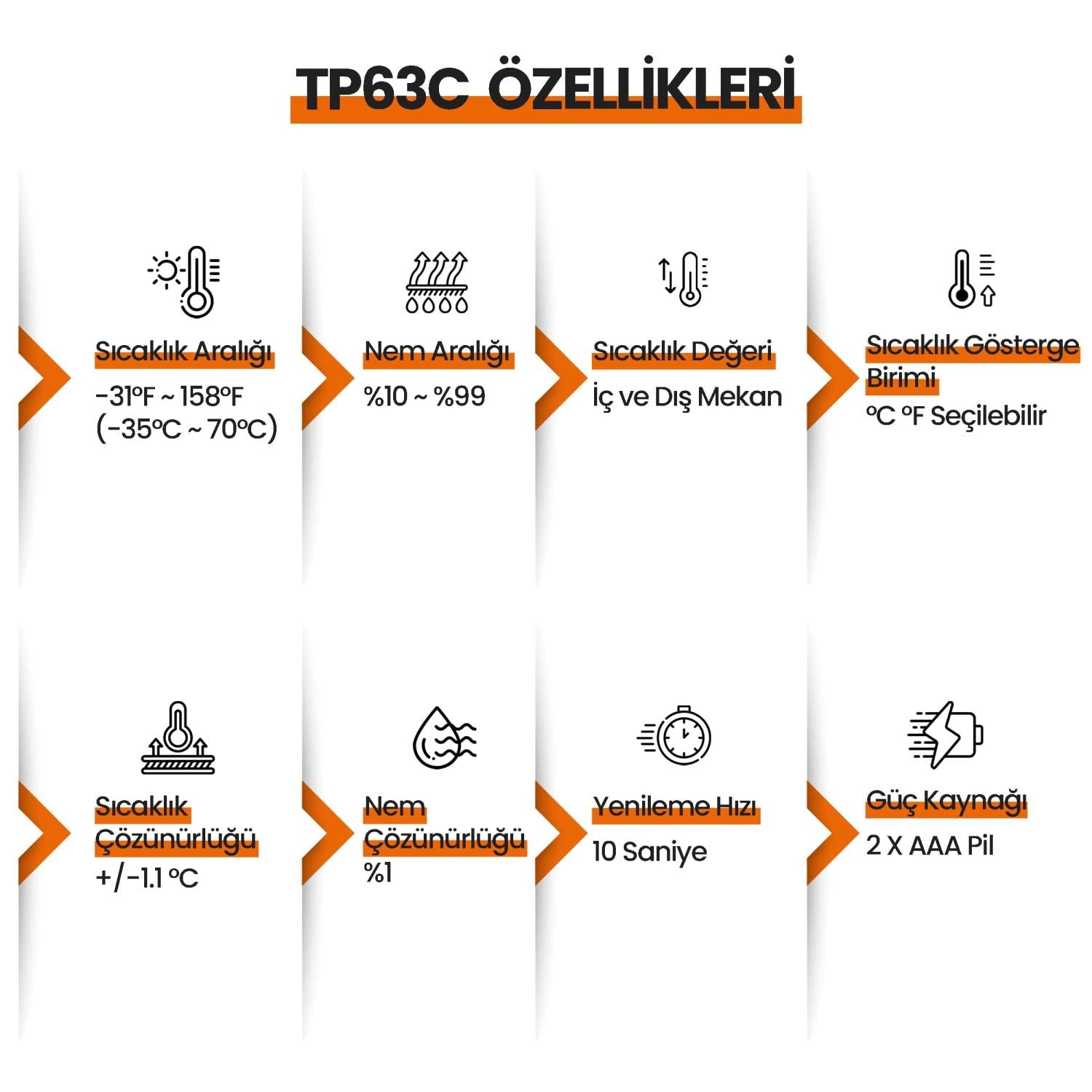 ThermoPro TP63C İç ve Dış Mekan (Sensörlü) Dijital Sıcaklık ve Nem Ölçer