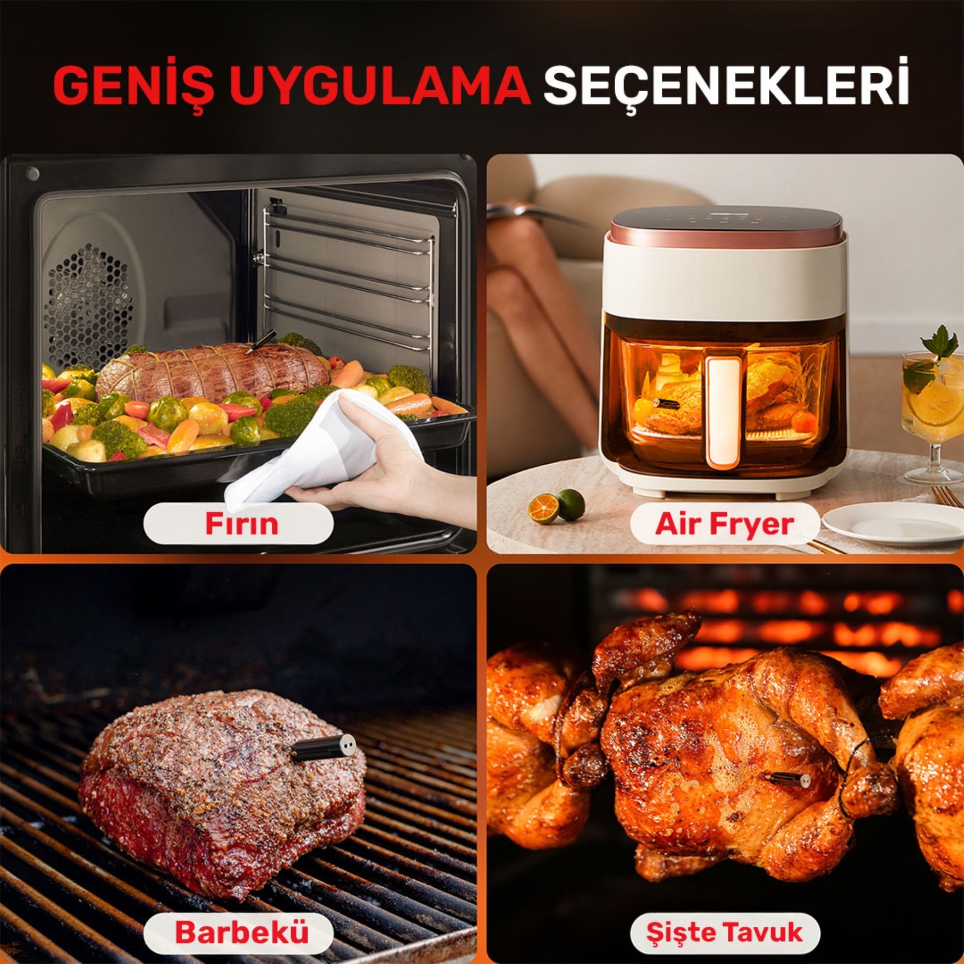 Et Pişirme: Steak, tavuk, balık gibi etlerin iç sıcaklığını doğru ölçerek mükemmel pişirme sağlar.