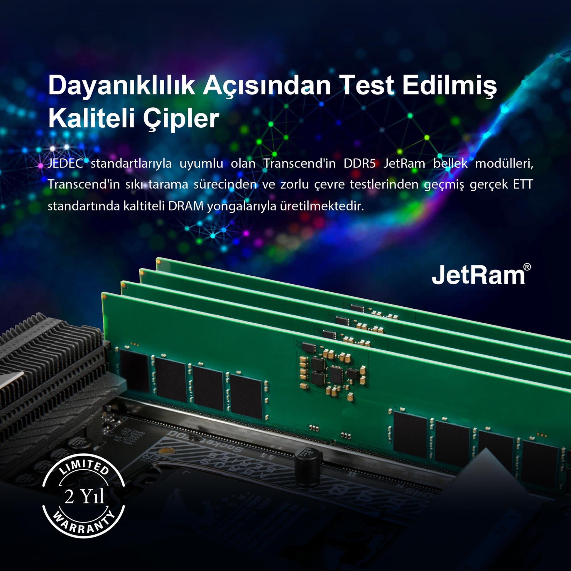Transcend'in son teknoloji ürünü DDR5 DRAM modülleri, bilgisayarınızın performansını bir üst seviyeye taşıyarak güçlü bir deneyim sunar. Gelişmiş sistem performansı ve güvenilirliği ile DDR5, bilgisayar kullanıcılarına benzersiz bir hız ve verimlilik sunar.
